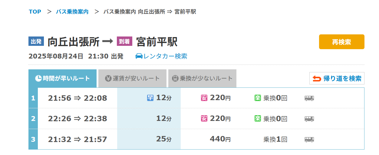 ※ 系統・経由・本数はダイヤ改正等で変わる場合があります。最新の時刻は 川崎市バスナビ(向ヶ丘出張所)、 川崎市(向丘出張所の交通案内)、 NAVITIME(向ヶ丘出張所) をご確認ください。
