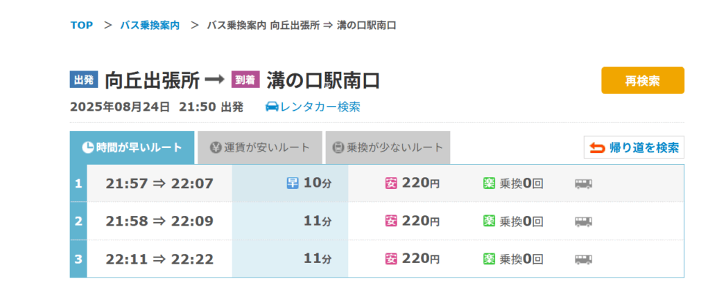 | 溝15(川崎市バス) | 宮前平駅 ↔ 溝口駅南口(系統により宮前区役所前・第三京浜入口 経由あり) | 宮前平駅/宮前区役所前/犬蔵/向ヶ丘出張所/高津区役所/溝口駅南口 | 平日・土曜とも本数多め。通塾に使いやすい幹線。 |